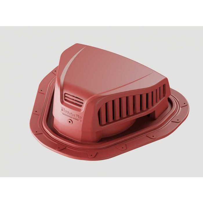 Отличный выбор, чтобы обустроить систему вентилирования подкровельного пространства и сделать яркий акцент в дизайне. Приглушенный красный оттенок аэраторов визуально усилит цвет красно-коричневой кровли.