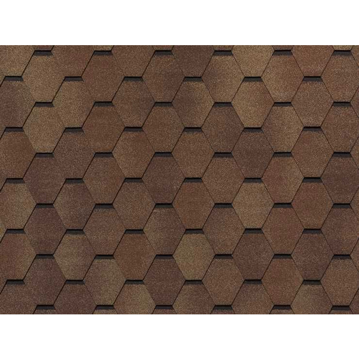 Модель МОЗАИКА. Благодаря сочетанию оригинальной шестигранной формы и особых переливов цветовых оттенков, позволяет добиться уникального мозаичного эффекта на поверхности готовой кровли. Изысканный эффект мозаики. Укладка отличается простотой: черепица имеет самоклеящуюся поверхность, плотное прилегание черепиц друг к другу повышает гарантию прочности покрытия в зонах сильных ветров.