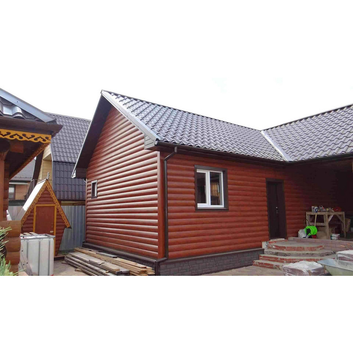 Металлический сайдинг Grand Line Блок-хаус 0.45 мм PE RAL 3009 оксидно-красный