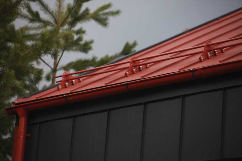 Картины крепятся к обрешетке с помощью кляммеров. Кляммеры закатываются в фальцы, благодаря чему сквозные отверстия на поверхности фальцевой кровли отсутствуют.