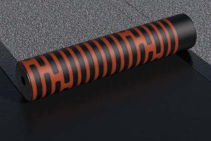 Рулонный битумно-полимерный СБС-модифицированный материал на нетканой основе из высокопрочного полиэстера с крупнозернистой посыпкой на верхней стороне. Нижняя сторона полотна защищена специальным термостойким покрытием Syntan (Синтан), на которое нанесены адгезионные полосы с продольным рифлением по технологии «защитный профиль», покрытые легкосгораемой полиэтиленовой пленкой.