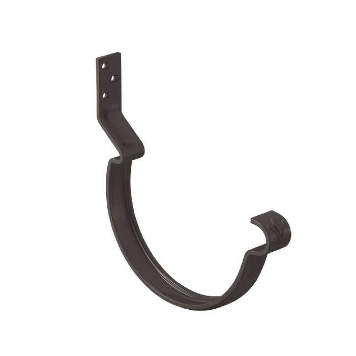 Конструкция крюка имеет более вытянутое и глубокое ребро жесткости, поэтому крюк выдерживает повышенные силовые нагрузки. Передний замок крюка фиксирует завиток желоба снаружи, и благодаря этому желоб удобно монтировать даже после установки фартука-капельника. Задний замок имеет конструкцию, исключающую смещение желоба под нагрузкой. Отверстия под крепеж выполнены с зенковкой под шляпку в потай. На передней части крюка расположен фирменный штамп - лилия.Поставляется с комплектом креплений.