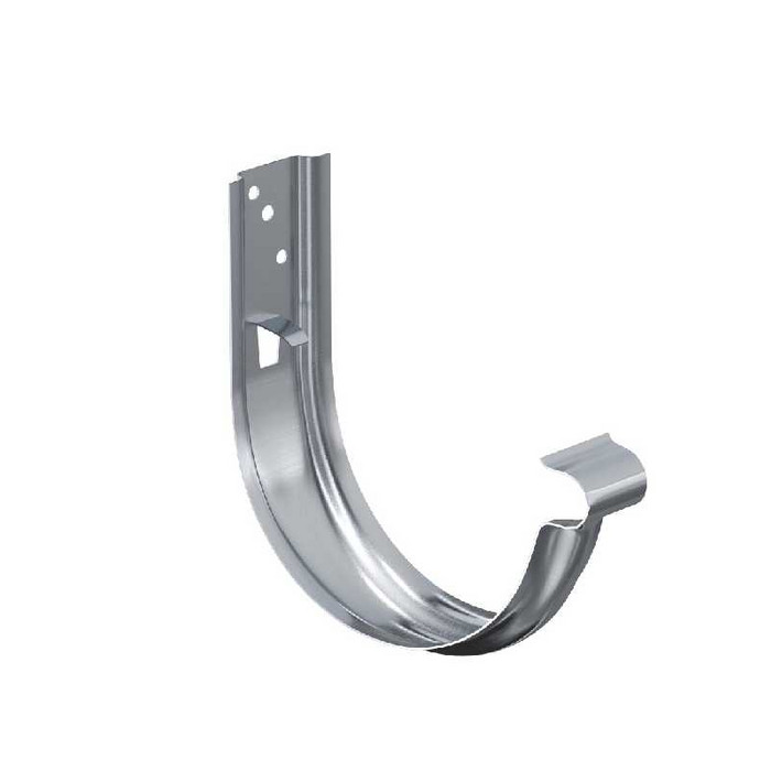 Крюк крепления желоба универсальный предназначен для крепления водосточного желоба по аналогии со стандартными крюками крепления желоба, и может быть использован как в качестве короткого крюка, так и в качестве длинного (при условии применения удлинителя крюка). Наличие изгиба для завитка желоба в передней части позволяет устанавливать желоба в крюки без отгиба установленного ранее фартука («капельника»). Наличие дополнительных ребер жесткости делает крюк очень прочным.