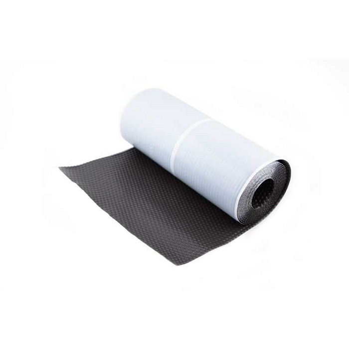 Лента сделана из гофрированного алюминия, аналог такой ленты используется в окладах для мансардных окон. На обратную сторону наносится очень долговечный и не теряющий своих свойств при высокой и низкой температуре бутил-каучуковый герметик. Такое покрытие легко взаимодействует с любой обезжиренной и чистой основой.