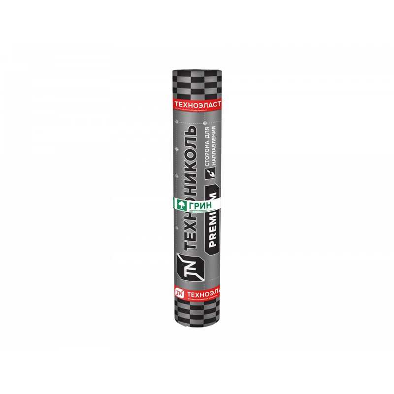 • Техноэласт ГРИН П — с полимерным покрытием с верхней и нижней сторон полотна; применяется для устройства гидроизоляции строительных конструкций и сооружений и устройства крыш с зелеными насаждениями.