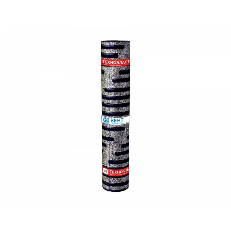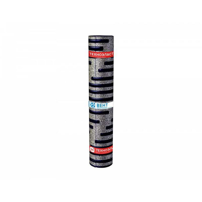 Техноэласт ВЕНТ получают путем двустороннего нанесения на полиэфирную основу битумно-полимерного вяжущего, состоящего из битума, СБС (стирол-бутадиен-стирол) полимерного модификатора и минерального наполнителя (тальк, доломит и др.). В качестве защитного слоя используют крупнозернистую (сланец) посыпку сверху и вентилируемую поверхность снизу. Вентилируемая поверхность имеет полоски из битумно-полимерного вяжущего, пространство между которыми заполнено мелкофракционным песком и вся поверхность покрыта тонкой полимерной пленкой.