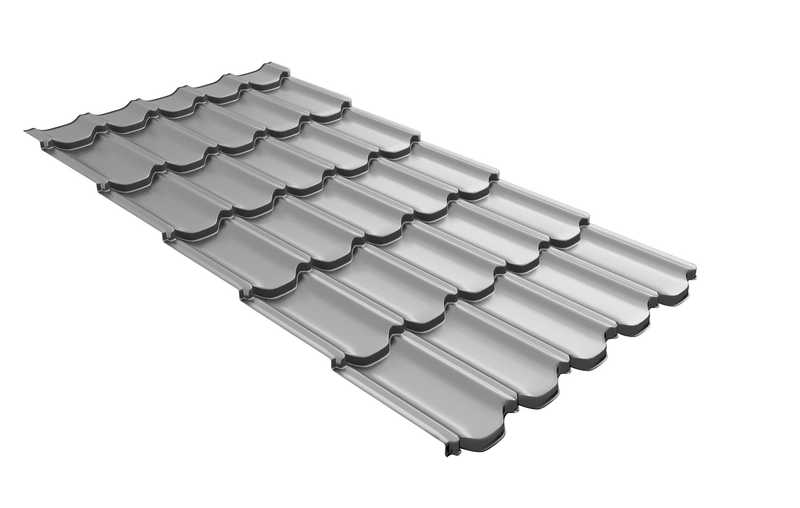 Металлочерепица Grand Line Kvinta plus 0,45 Полиэстер RAL 9006 Бело-алюминиевый | c 3D резом