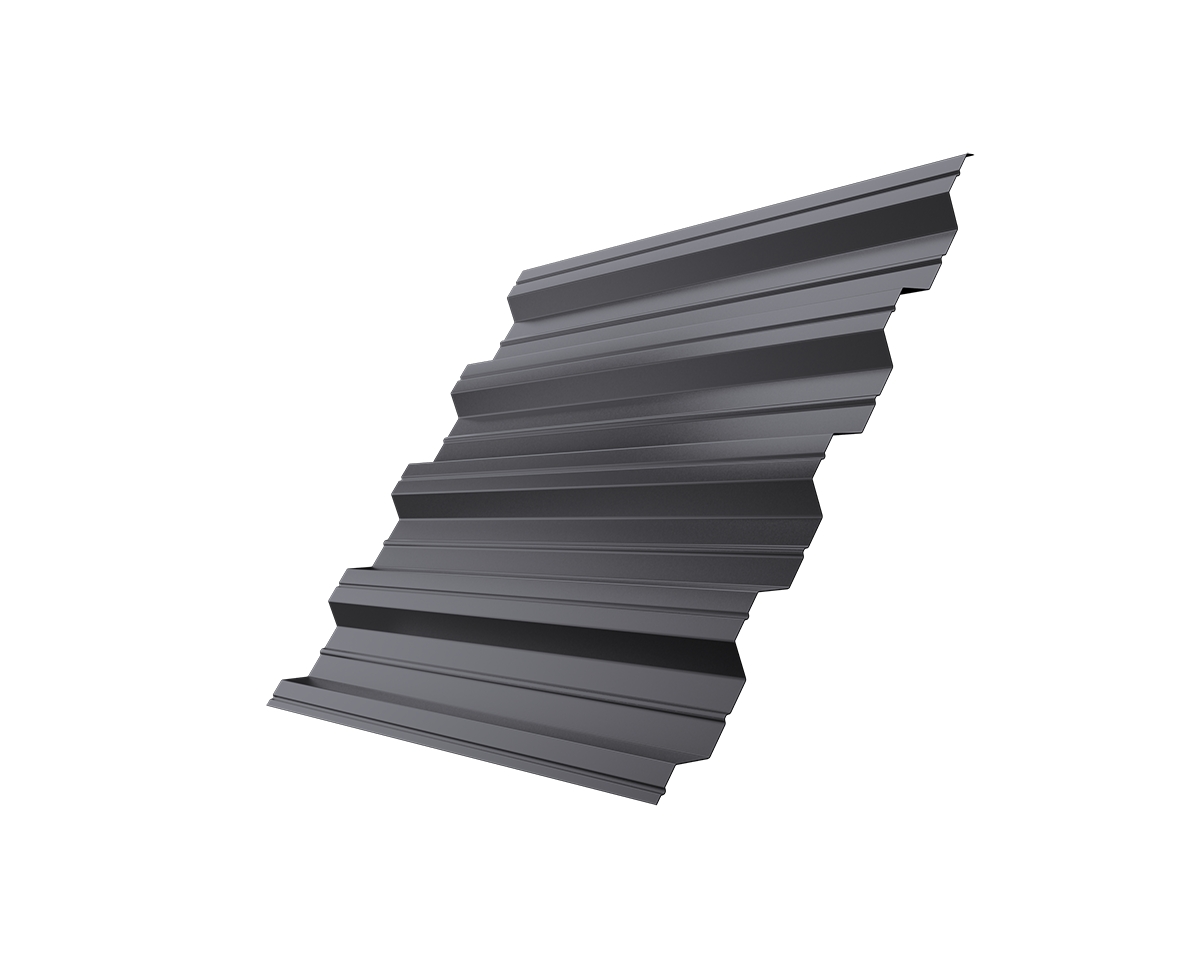 Профилированный лист (профлист, гофролист) представляет собой лист холоднокатного металла со сложным профилем. Среди других разновидностей лист, предназначенный для кровельных работ, можно отличить по наличию капиллярной канавки (желобка, запрессованного по краю листа и помогающего отводить влагу). Маркировка такого материала начинается индексом НС, ПК или R, число после индекса означает высоту волны. Кровельный профнастил обладает следующим набором характеристик: