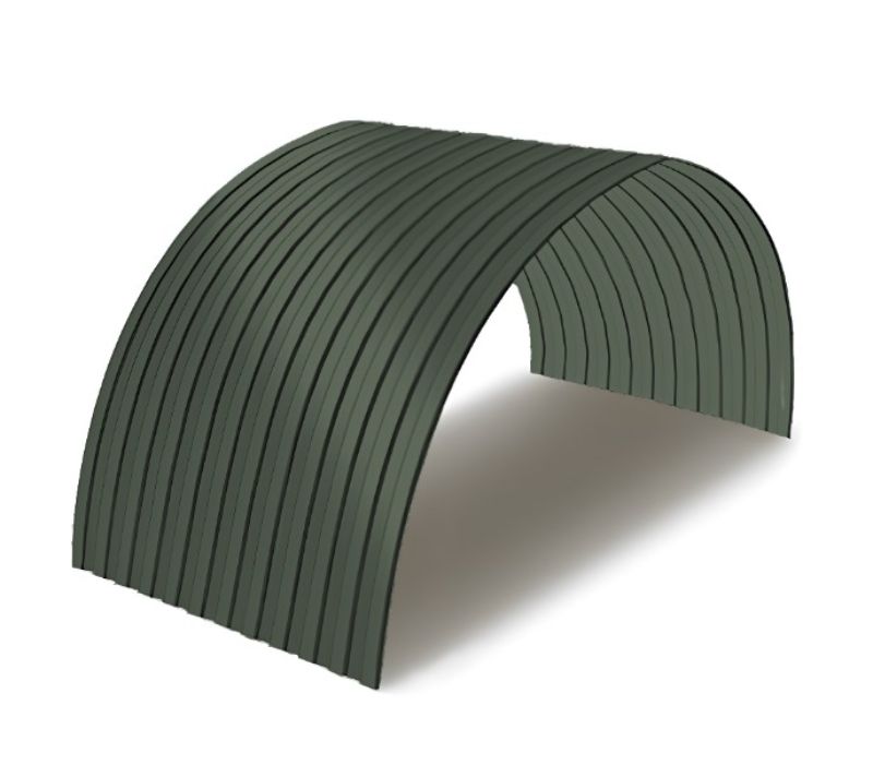 Профнастил для арочных перекрытий используется прежде всего при строительстве различных арочных конструкций, у которых существует определенный изгиб по радиусу. Он активно применяется при возведении ангаров, складов, зернохранилищ, различных округлых и полукруглых вариантов крыш и кровли. С его помощью можно построить как большое здание сельскохозяйственного назначения, так и красивый эстетичный навес для автомобиля площадью несколько квадратных метров. Основной отличительной особенностью данного вида профлиста является его изогнутая по радиусу форма, сформированная на специально предназначенной для этого профилегибочной линии. Радиус изгиба может быть самый разнообразный, и зависит прежде всего, от требований заказчика и характеристик будущего здания. Плюсами такого материала являются как его изготовление в заводских условиях, так и геометрическая точность, в результате чего стыки листов практически не видны и конструкция выглядит действительно монолитной.