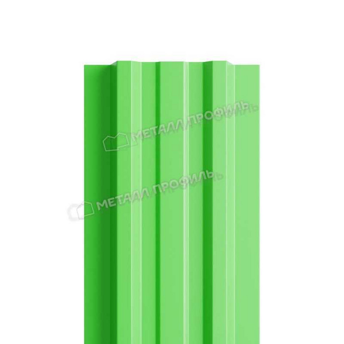 Штакетник металлический МП LАNE-T 16,5х99 NormanMP (ПЭ-01-6018-0.5) — современный материал для строительства заборов. Это рейки из стали, обработанные покрытием NormanMP цвета 6018 Жёлто-зелёный. Чтобы штакетник не получил повреждения в процессе транспортировки, на него нанесена специальная плёнка — её удаляют в процессе монтажа. Визуально похож на деревянное ограждение, но он более практичный: не требует покраски, противостоит воздействию негативных факторов, устойчив к УФ-излучению и т. п.