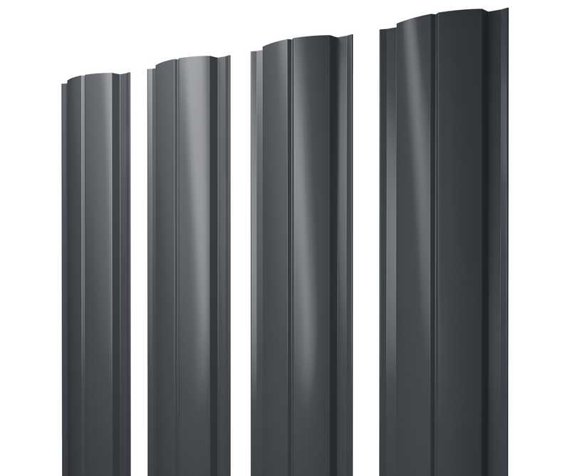 Штакетник Полукруглый Slim Grand Line 0,45 Полиэстер - double RAL 7024 Мокрый Асфальт