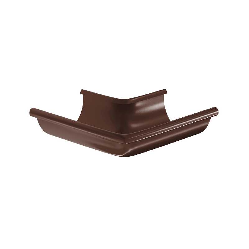 Угол желоба наружный 90° устанавливается на внешних углах кровли и предназначен для изменения направления движения воды. Угол выполнен по уникальной технологии без сварного шва (цельнометаллический).