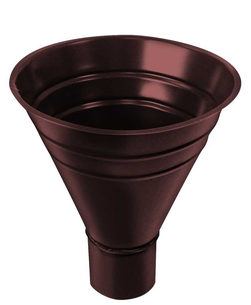 Воронка водосборная предназначена для сбора воды в том случае, когда сток не организован посредством желоба, а осуществляется по ендовам (сложные формы крыш).